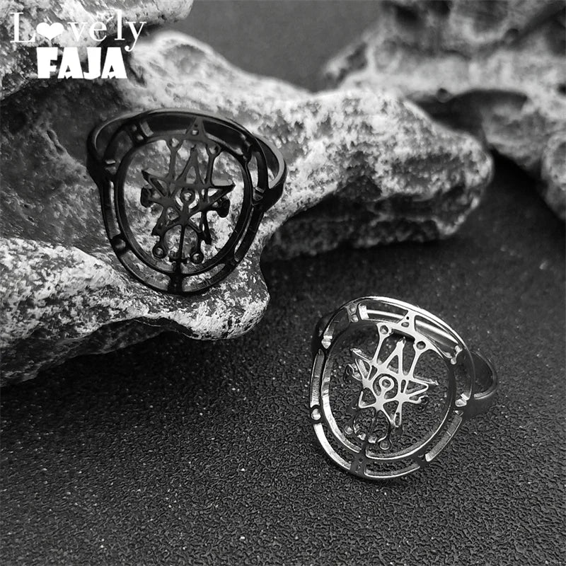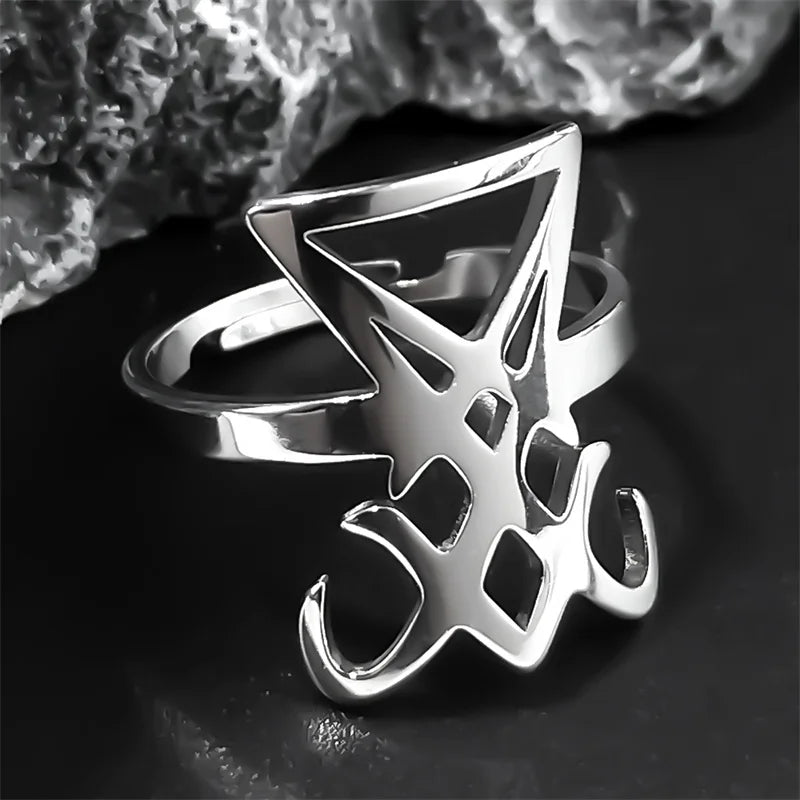Esoterische Ringe – Edelstahl Ring mit Bergkristall im Gothic-Look