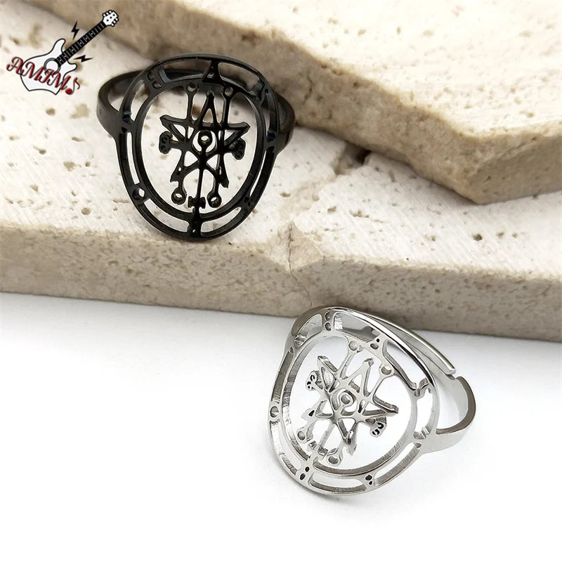 Esoterische Ringe – Stern Edelstahl-Ring Bergkristall (Unikat-Look)